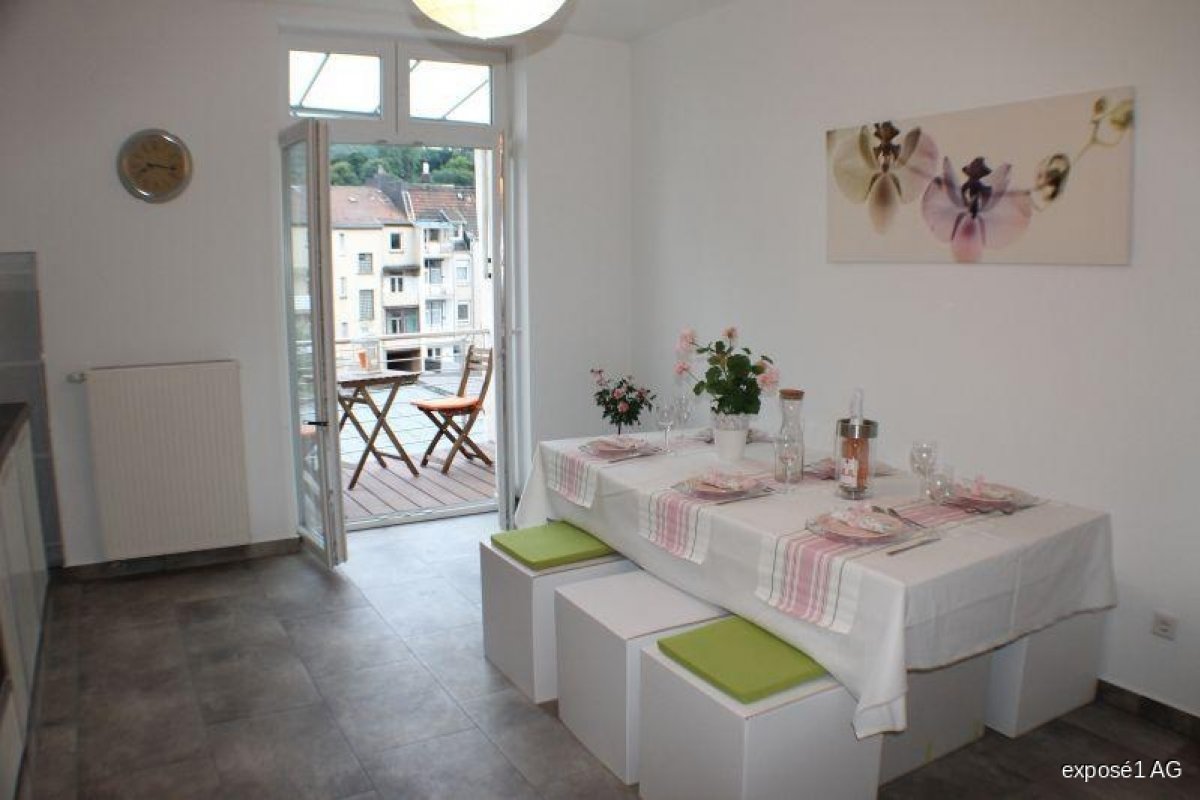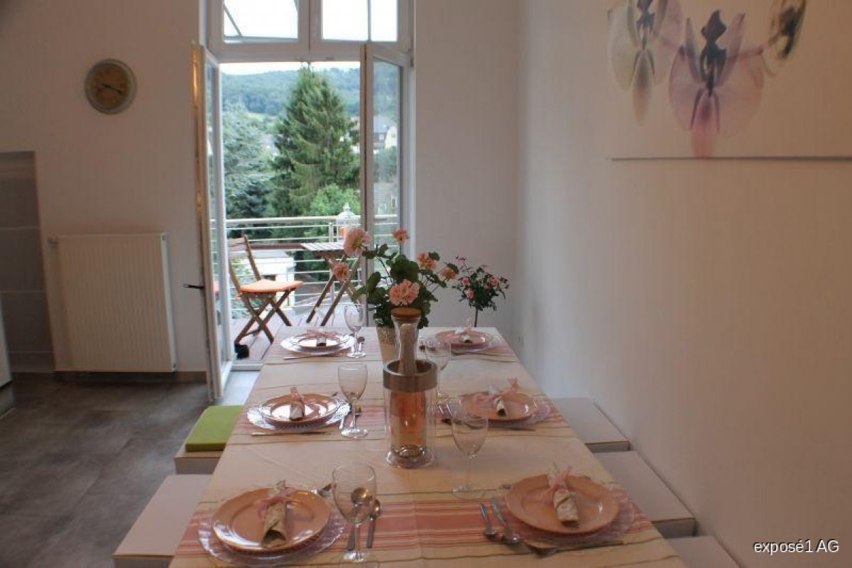 Auf den gut geschnittenen 18 m² der Küche finden eine Küchenzeile und ein Esstisch mit 6 Stühlen problemlos ihre Plätze . Ein praktischer kleiner Abstellraum ist auch vorhanden. Von der Küche aus begehen Sie Ihren Frühstücksbalkon, genießen die Aussicht und die Sonnenstrahlen im Herbst. Ihre Balkonmöbel und Pflanzen finden hier und auf dem zweiten Balkon ein neues Zuhause. Der Boden besteht aus pflegeleichtem WPC-Dielen.