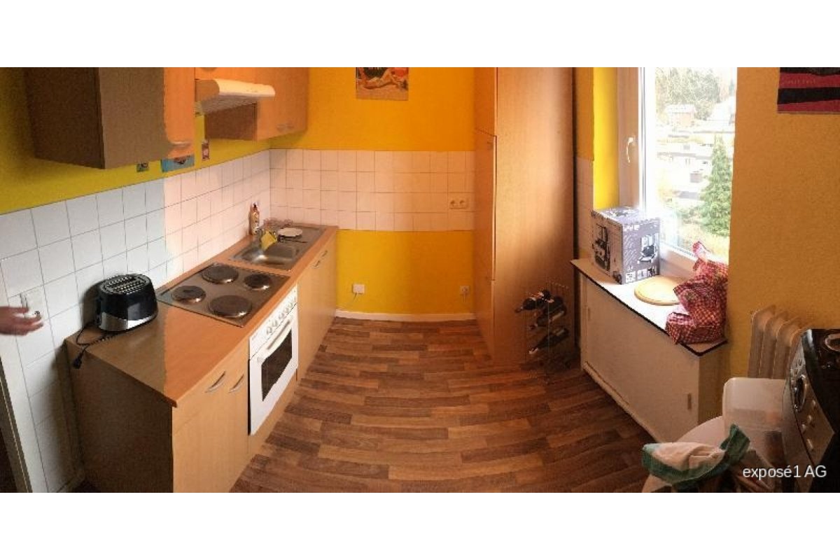 Die Wohnung in der Rüttstraße 8 im 1. Obergeschoss ist normal ausgestattet. Das Bad ist weiß gefliest und bietet Ihnen eine Badewanne, Waschbecken und ein WC. Die Wohnung wird außer die Küche weiß gestrichen übergeben. Für die Küche erhalten Sie einen Eimer weißer Farbe von Alpina oder gleichwertiger Qualtität. Die Böden sind außer Bad und Schlafzimmer mit Laminat versehen, das Bad geliest und im Schlafzimmer ist ein Teppichboden verlegt. Die auf den Bildern gezeigte Küchenzeile soll für einen Preis von 150,00 EUR übernommen werden.