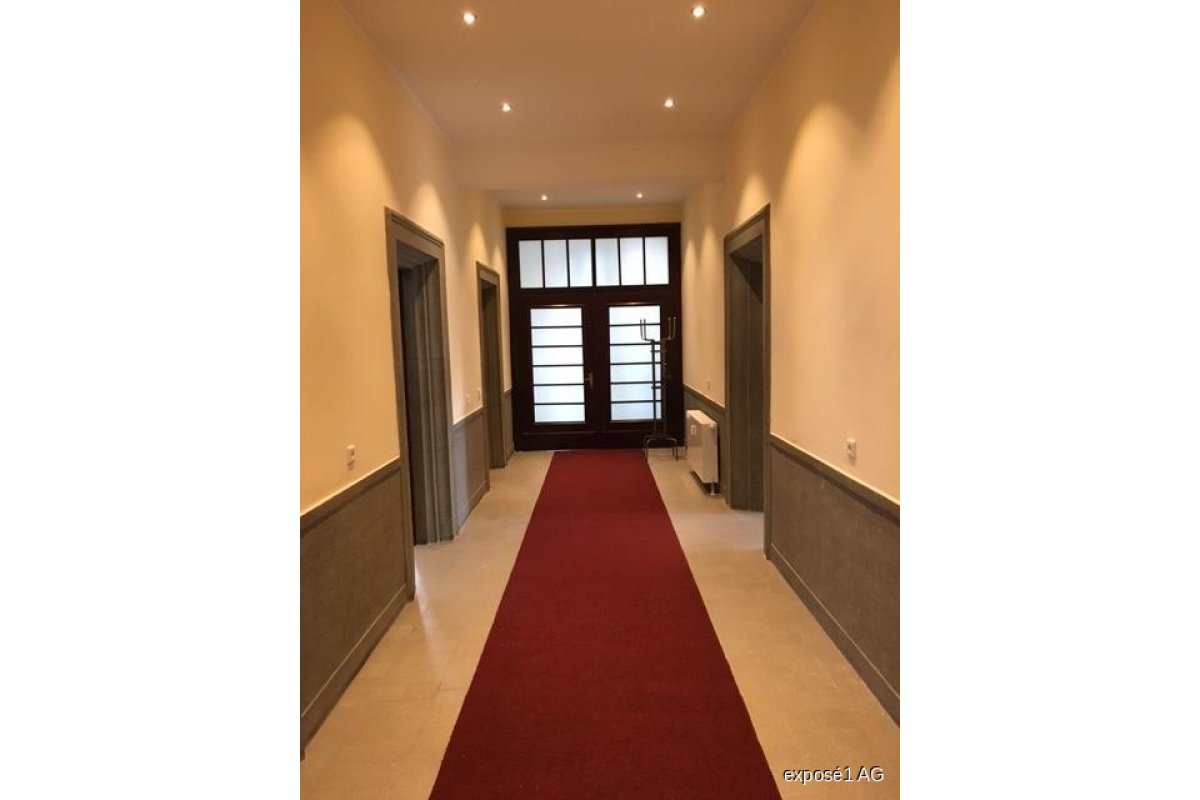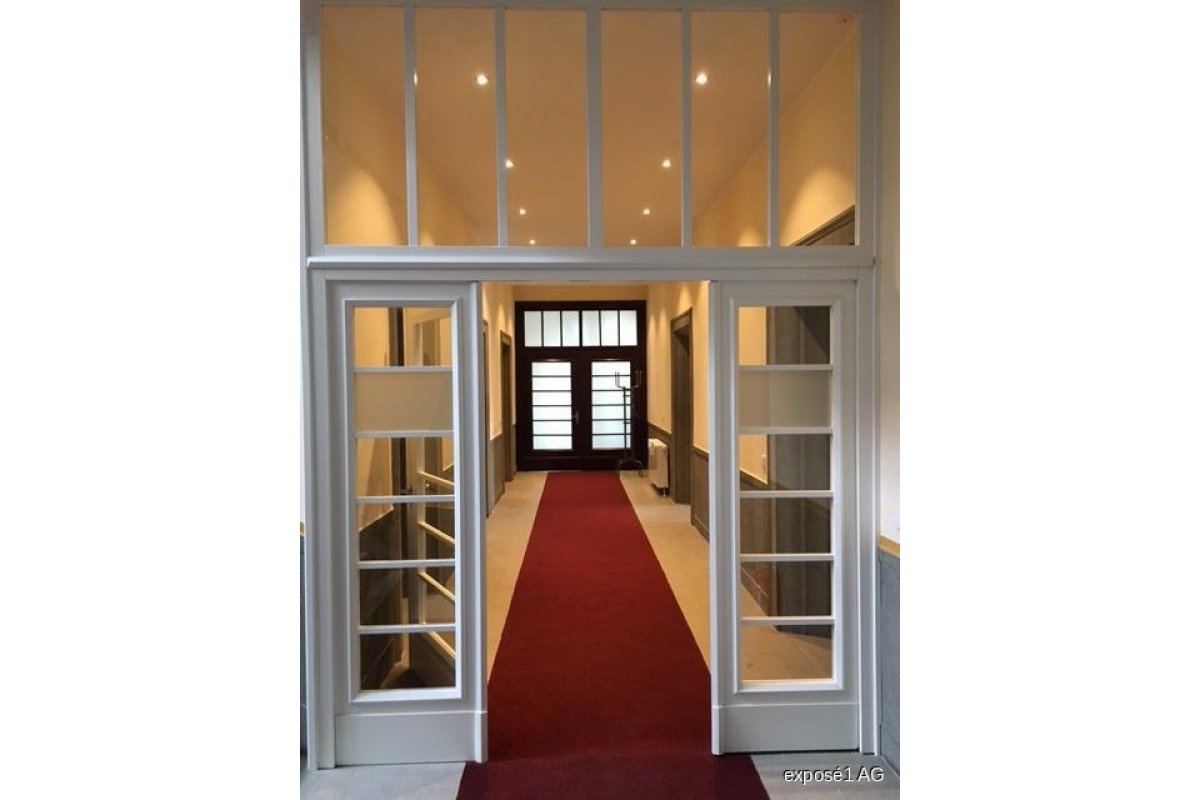 Die Büroeinheit ist über den historisch geprägten Haupteingang des Gebäudes zu erschießen. Die einzelnen Büroräume können jeweils vom großzügigen Flur erreicht werden. Insgesamt stehen 3 Büroflächen, eine Küche sowie 2 WC zur Verfügung. Über einen zweiten Zugang vom Turmtreppenhaus aus kann die Büroeinheit über einen Aufzug erschlossen werden.