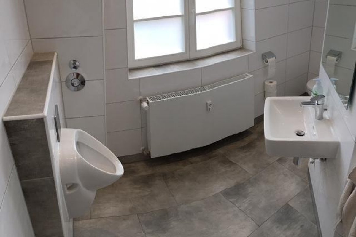 Der Grundriss hat sich durch einen Umbau im Jahr 2018 verändert, wodurch das Herren WC zu einer Küche inkl. Empfangsbereich umgebaut wurde (siehe Fotos). Der jetzige Mieter möchte seine Küche inkl. aller Geräte verkaufen.