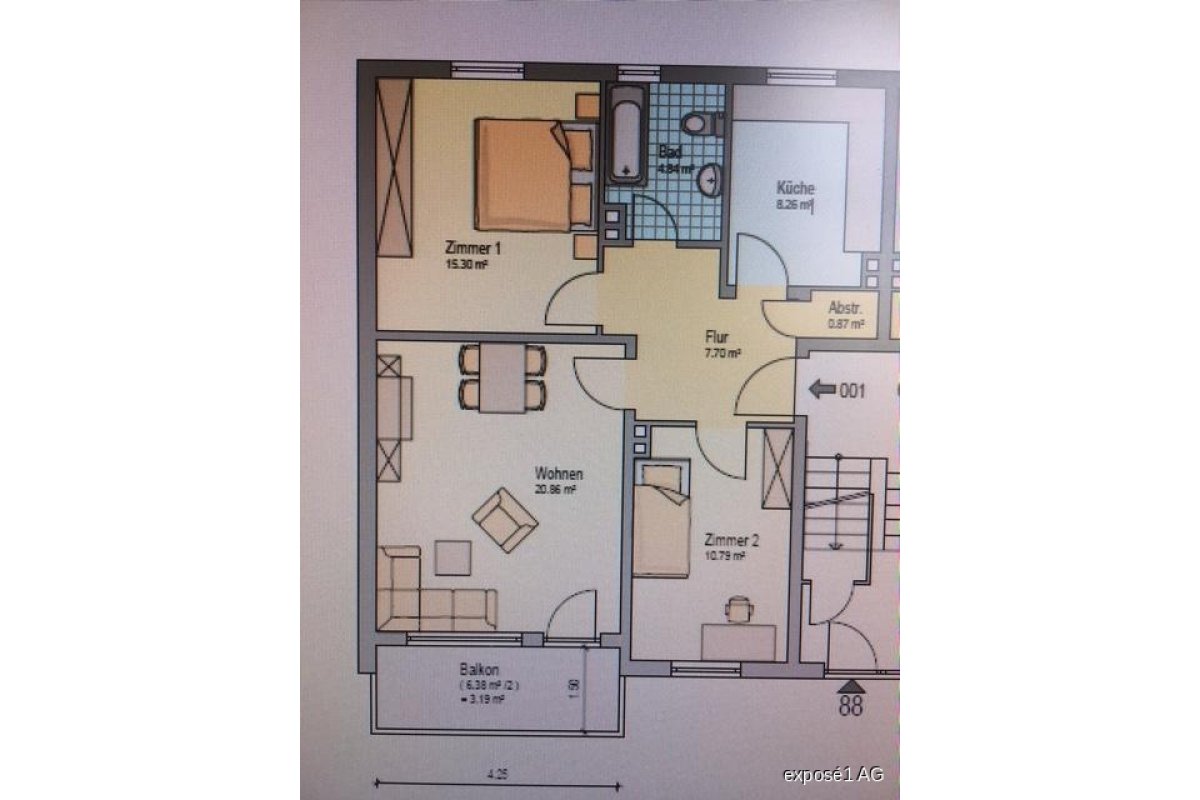 2 Schlafzimmer , Wohnzimmer, Bad, Abstellfläche, Küche, Balkon