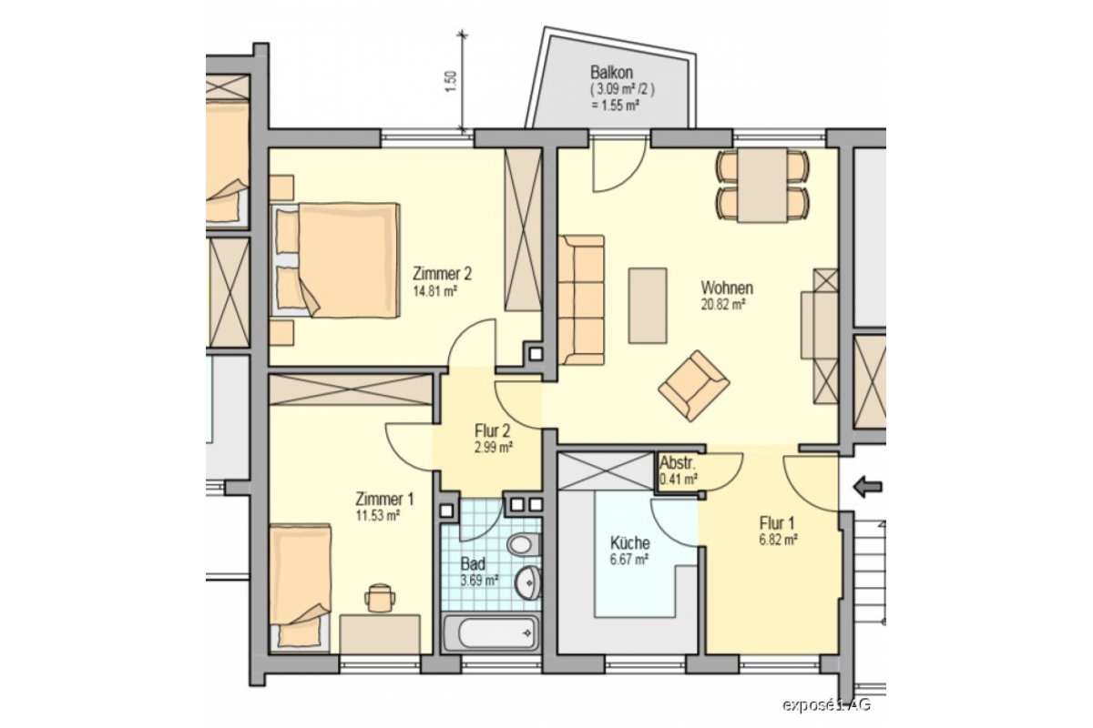 Zimmer70,50 m2